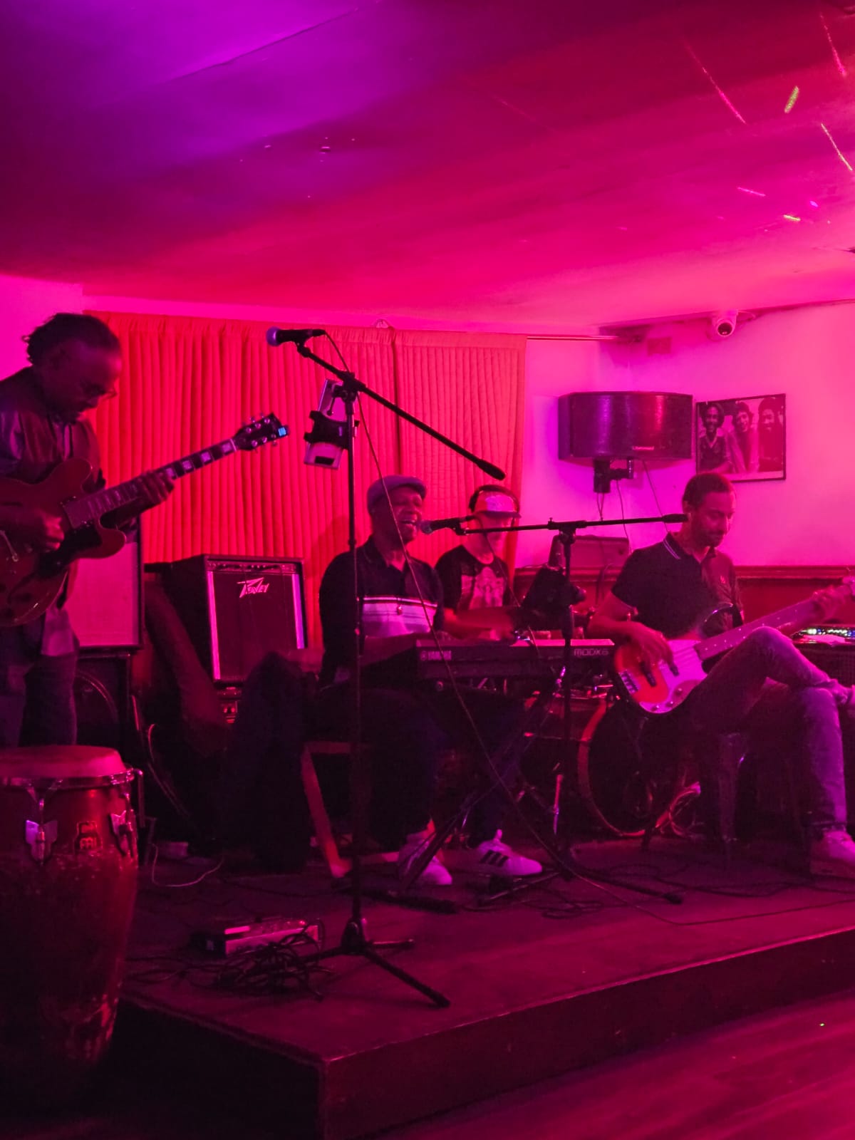 Et ici, que se passe-t-il ? Mercredi dernier, je suis allée à l’Open Mic organisé par mon professeur Phil Ramocon, un ami de Gregg (je vous ai parlé de Gregg la semaine passée). Nous avions prévu de chanter deux chansons : « War » de Bob Marley et « Menina Bela », ma propre composition.