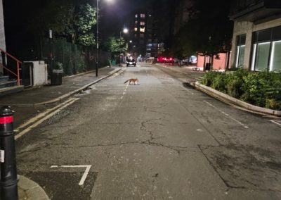 Ce soir-là, je suis rentrée vers 2h00 du matin. J’ai marché pendant une heure, sans direction, pour essayer de me vider la tête. J’ai fait la rencontre de la solitude de l’artiste, ce moment où l’on se sent seul au monde, où l’on est face à soi-même. Il était minuit, les rues étaient vides, je n’avais pas peur. Tout à coup, j’ai vu un renard. Ici, on en voit facilement la nuit. Il était tellement beau ! Il était tellement beau ! Son pelage roux, sa taille d’environ 40 cm avec la queue, ses longues oreilles triangulaires et ses yeux vifs m’ont captivée. Il m’a fait penser au renard du Petit Prince de Saint-Exupéry. Saviez-vous que les renards sont connus pour leur grande capacité d’adaptation ? Quelle coïncidence ! Au Brésil, j’ai grandi dans un quartier populaire de la banlieue de Rio de Janeiro. Là-bas, on ne voit que des chiens errants ou des voleurs prêts à nous dépouiller (j’exagère à peine). Ce soir-là, j’étais triste, et la vie m’a offert une rencontre spéciale qui m’a rappelé qu’elle est belle.